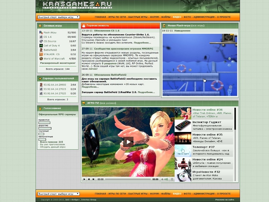 Игровой портал Красноярска, на котором собраны лучшие сетевые компьютерные игры (CS 1.6 , Call of Duty 4, Battlefield 2, World of WarCraft и другие), а также более двух тысяч флеш-игр. Для удобства общения геймеров здесь работают форум, фото- и видеогалерея.