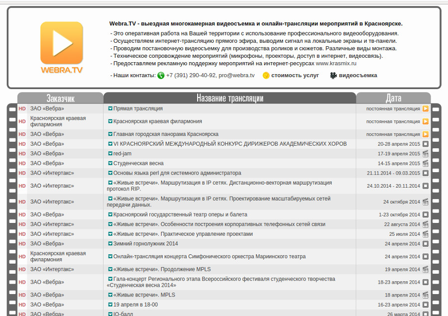 Продакшн-студия Webra.TV организует выездные многокамерные видеосъемки и онлайн-трансляции мероприятий в Красноярске.
